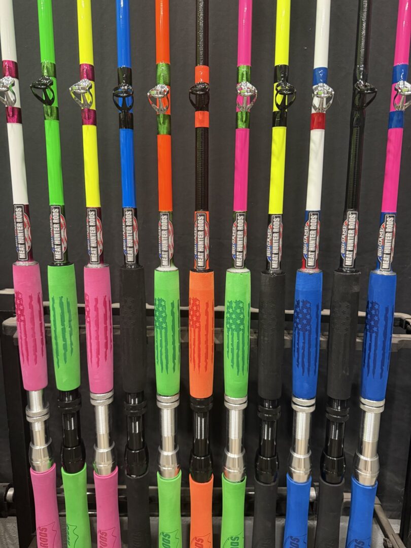 Big Game 2.0 Series rods come with 9 heavy-duty stainless-steel guides plus top, an aluminum reel seat, and high-density EVA contoured foam grips. They are fast-action rods with heavy backbone and are designed to cast up to 16 ounces with ease.
